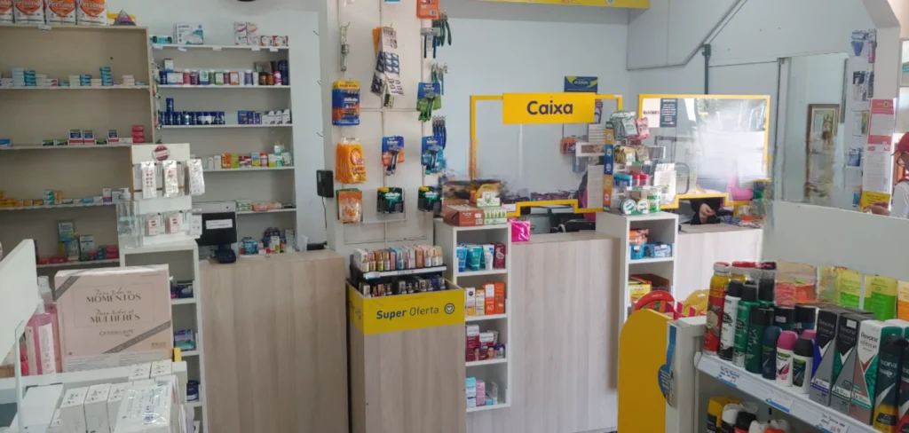 A farmácia encontra-se em pleno funcionamento com suas prateleiras e estoques abastecidos, como segue nas imagens.
